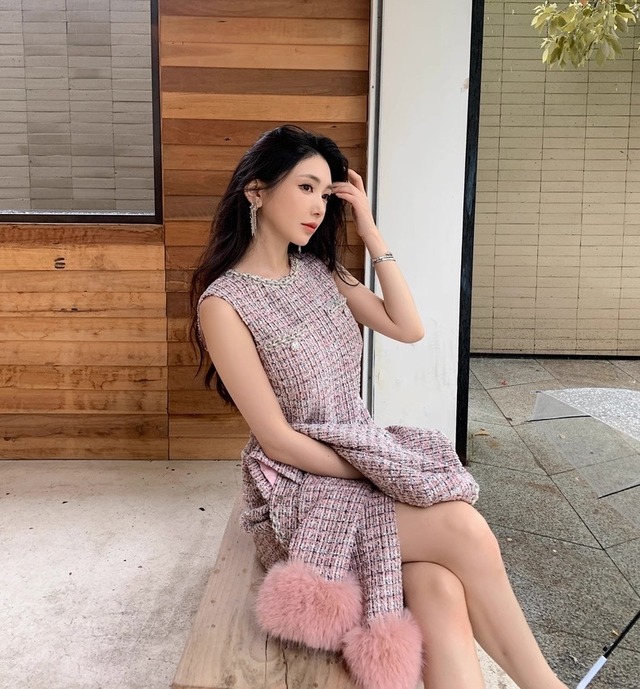 同素材のノースリーブドレスとのセットアップで、さらに華やかなコーデが完成します・・・♡