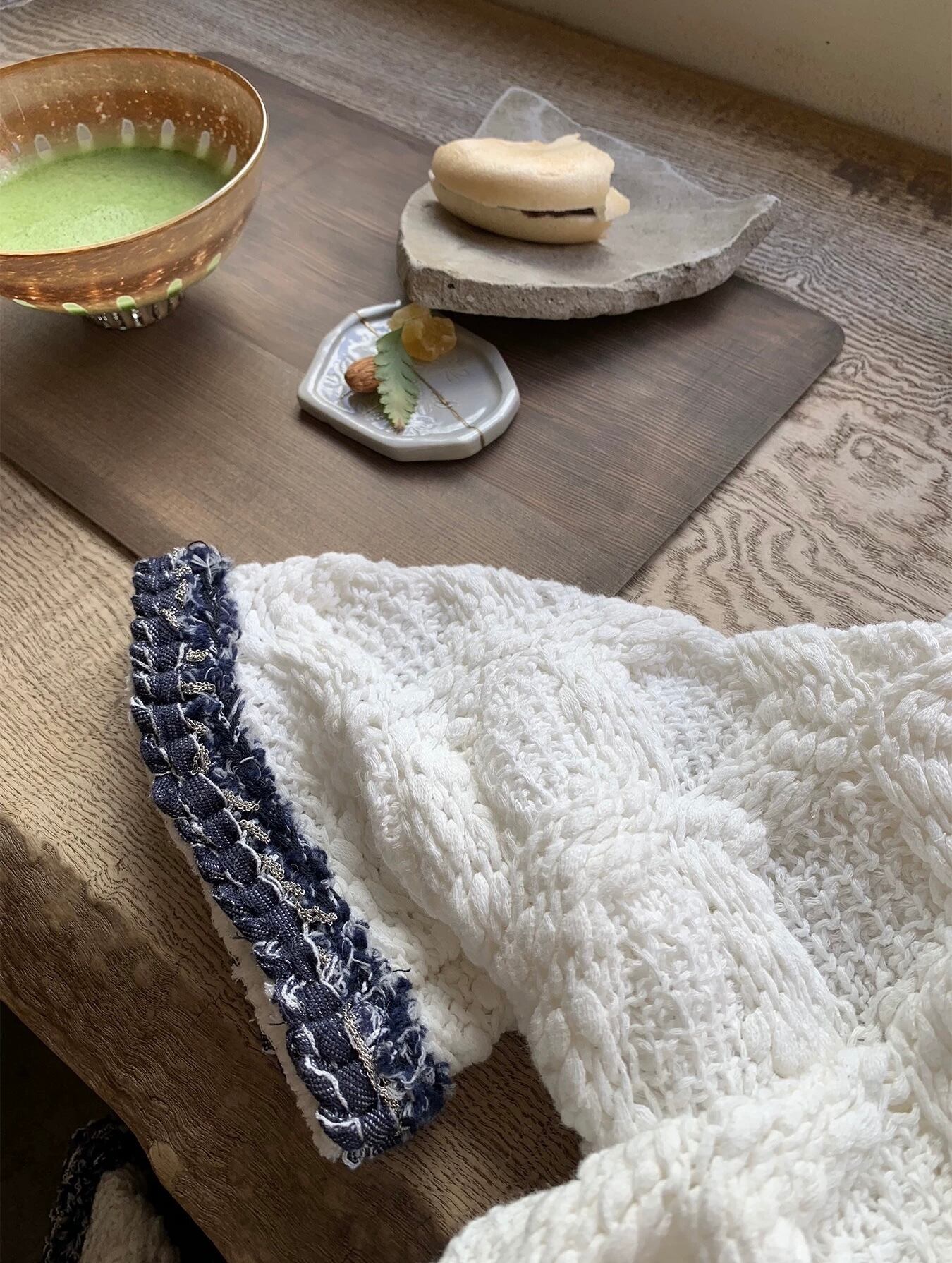異なる編み地を絶妙なバランスで組み合わせることで、
