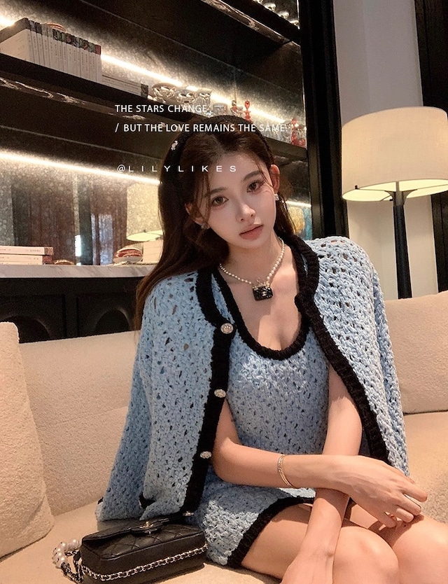 同素材のカーディガンとのセットアップで、さらに華やかなコーデが完成します・・・♡