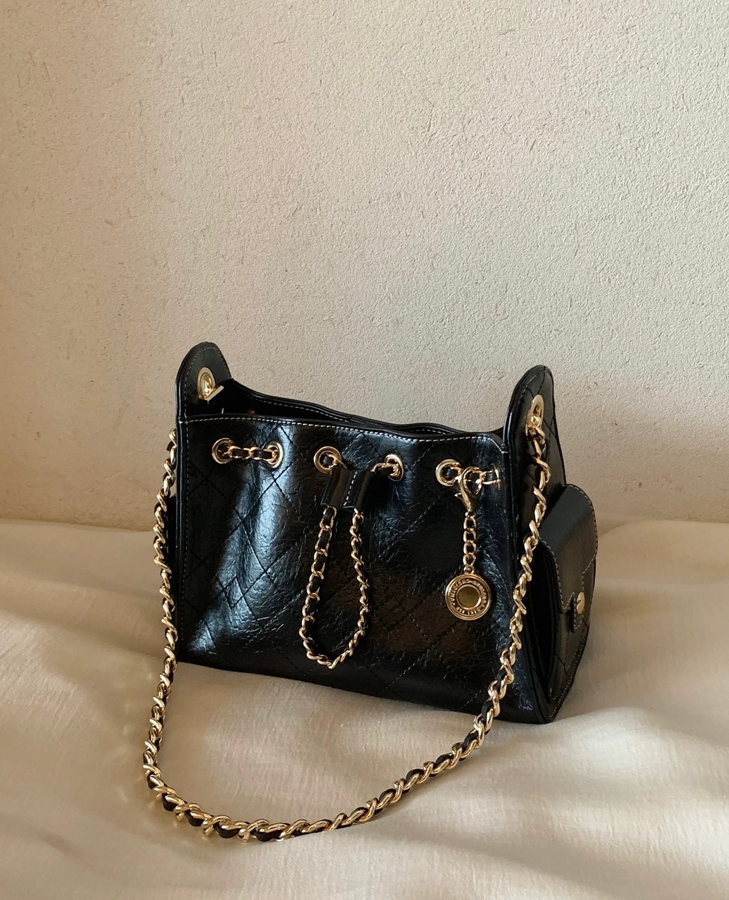 キルティング チェーンショルダーバケットバッグ