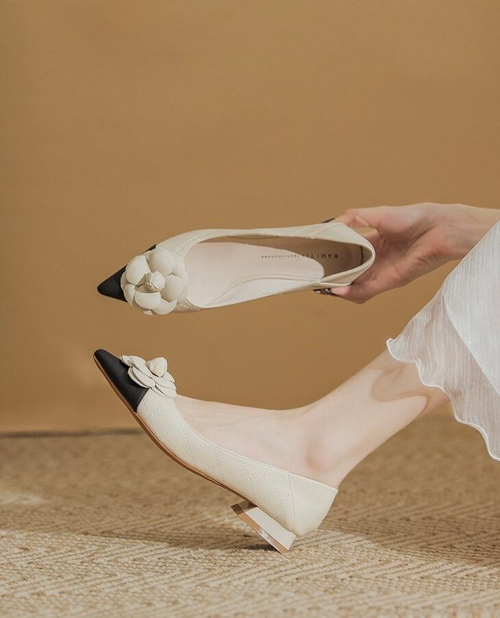 上品でクラシカルなカメリアが目をひくパンプス♡