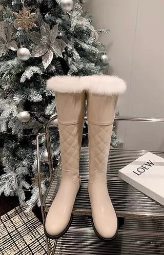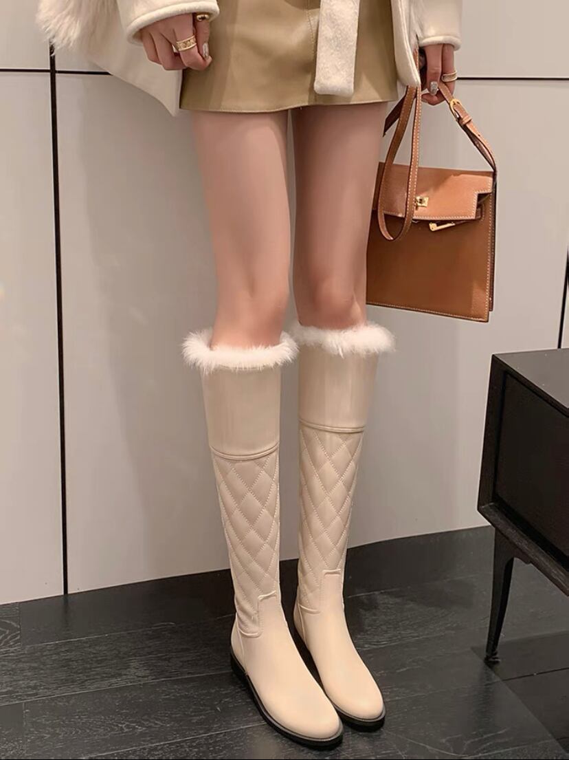 エレガントなキルティングデザインとふわふわのラビットファーが目を惹くロングブーツ♡