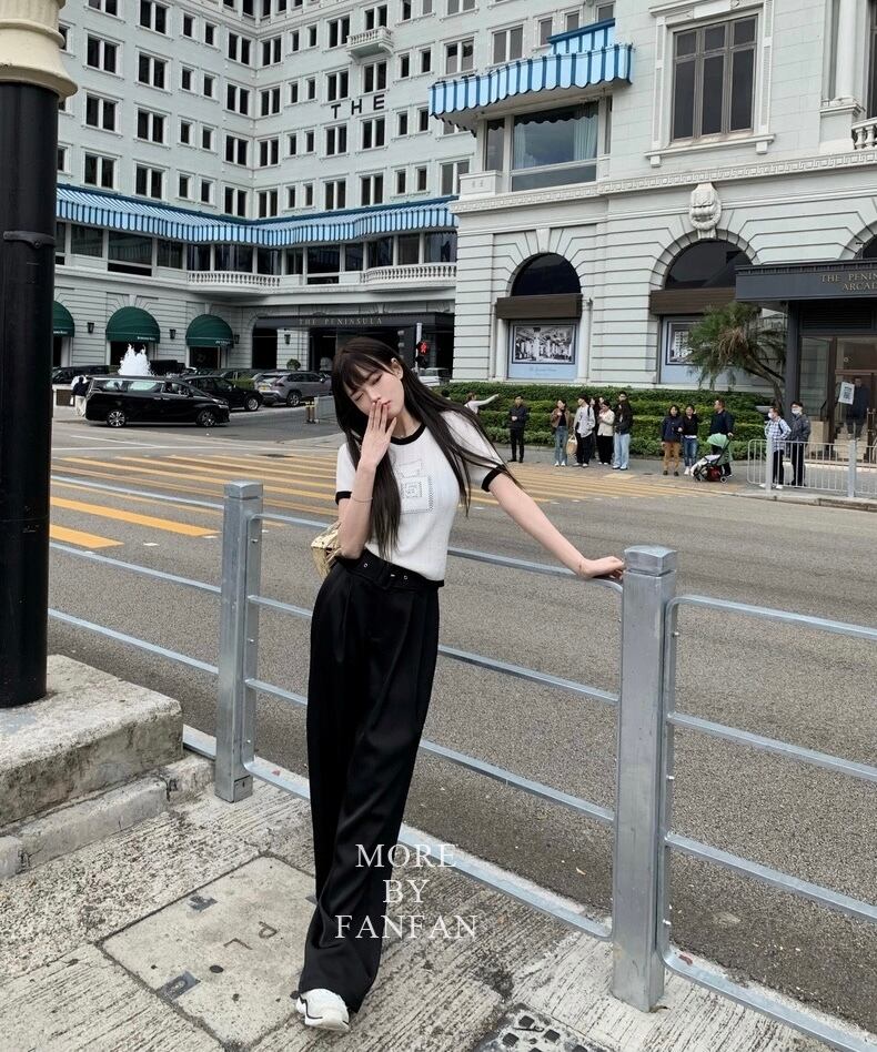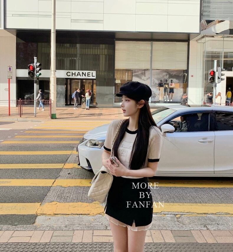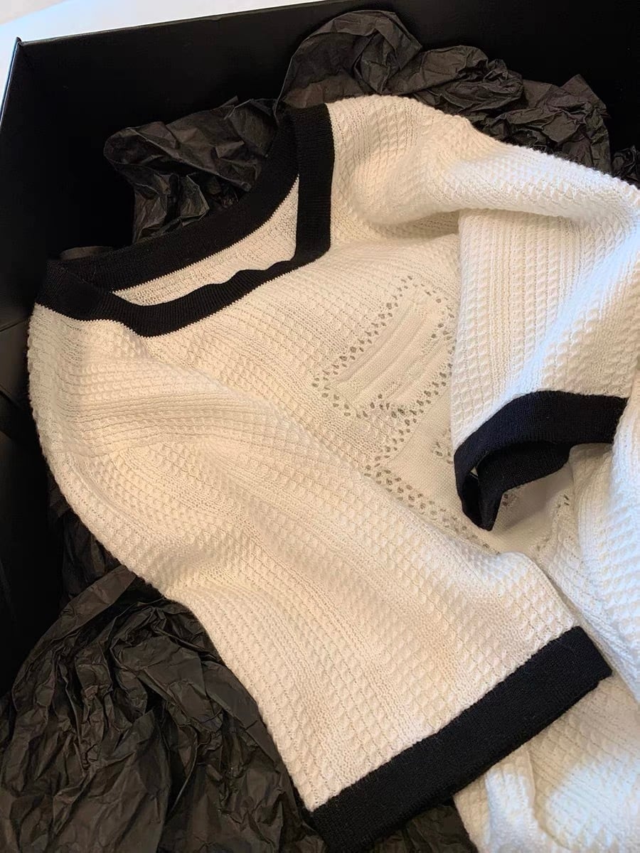 パフューム柄がとってもエレガント♡バイカラー配色がポイントの半袖ニット♡