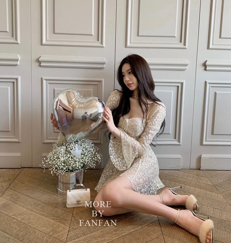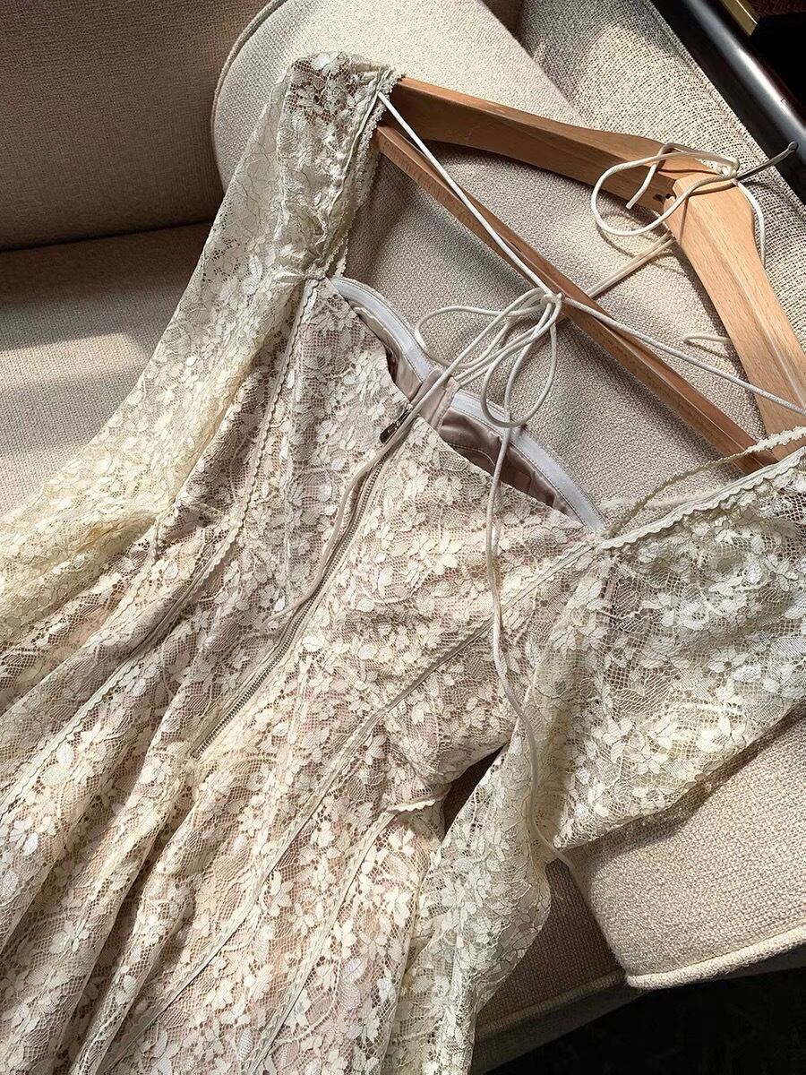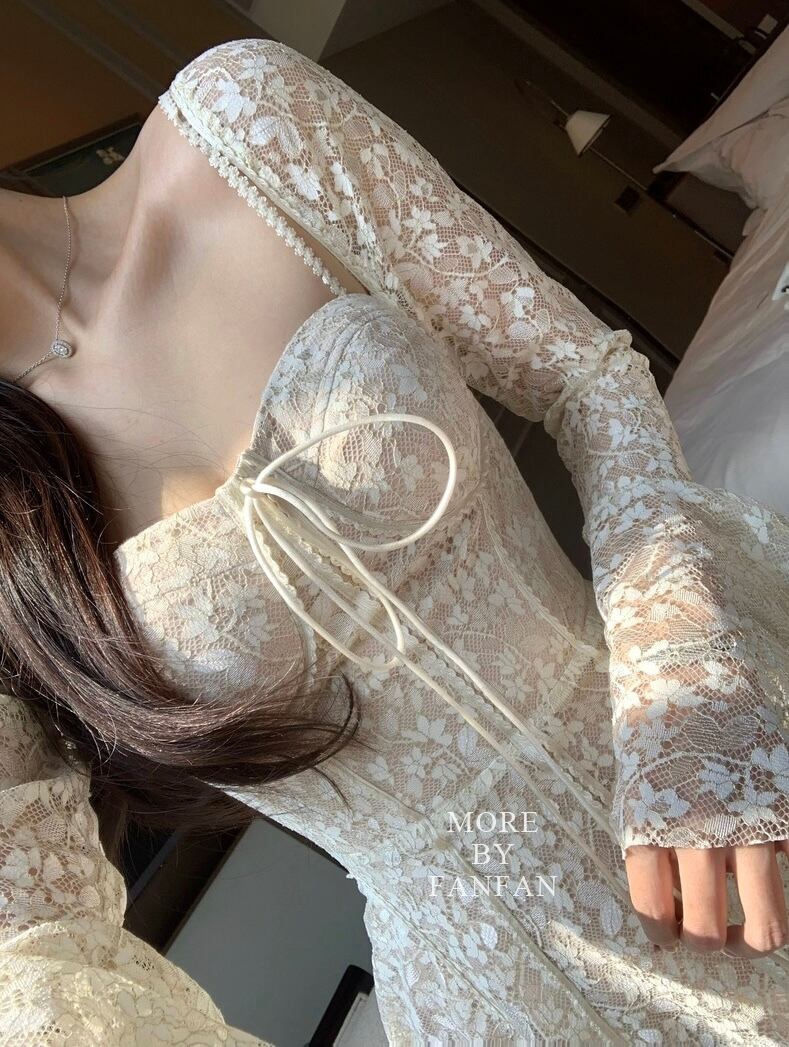 フレアスリーブは程よいシアーレース仕様で、抜け感をプラス◎