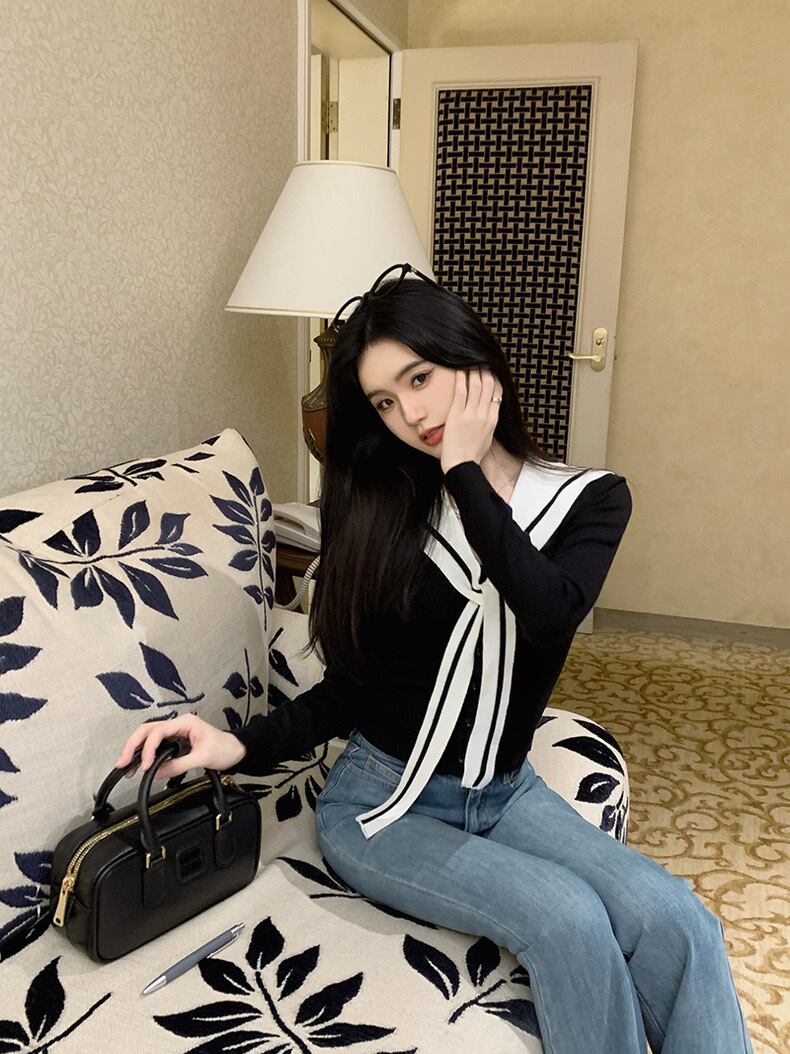 トレンドのセーラーカラーを取り入れた、小顔効果抜群のニットです♡