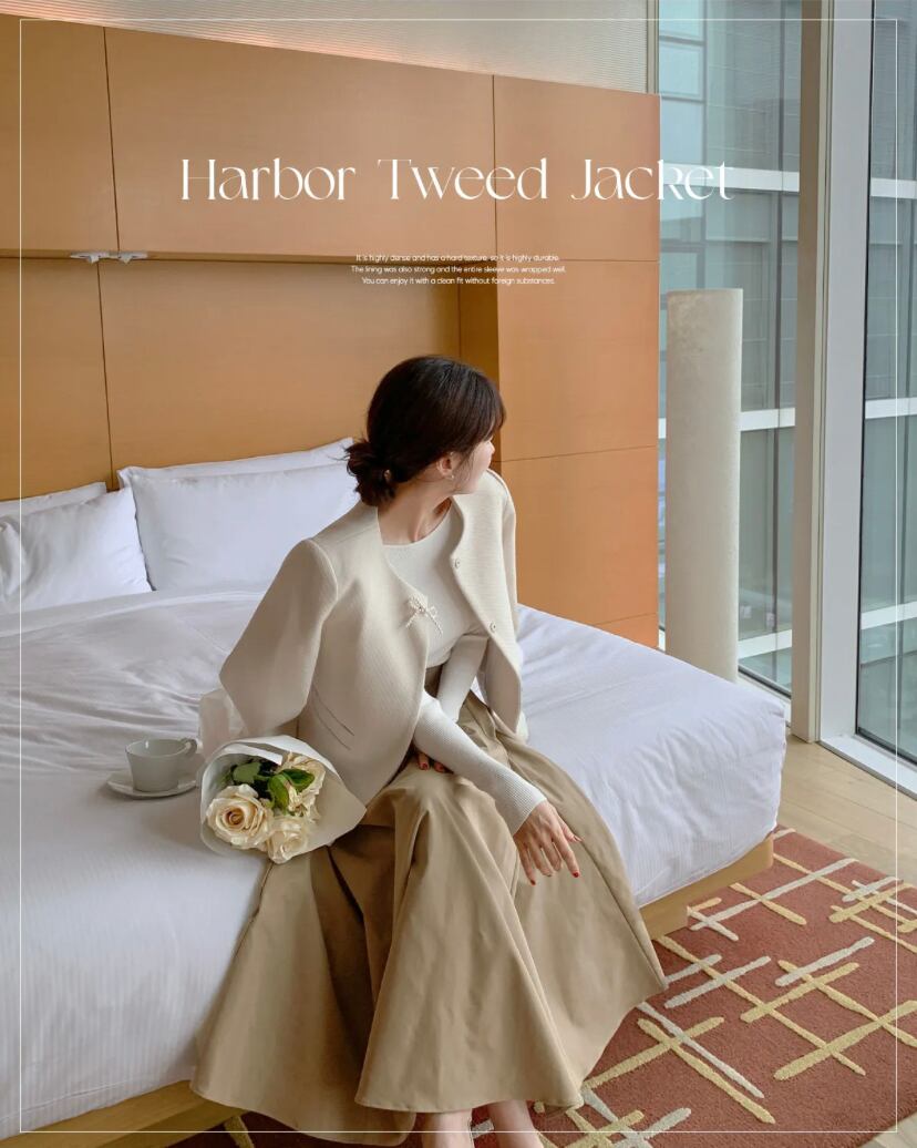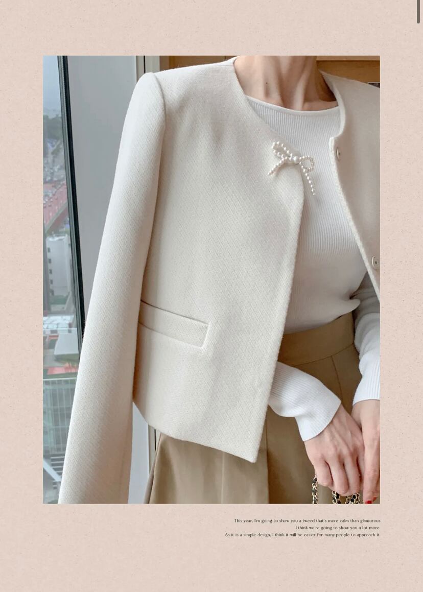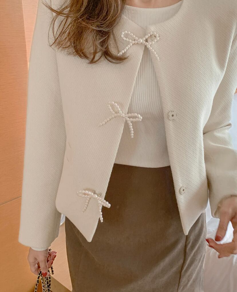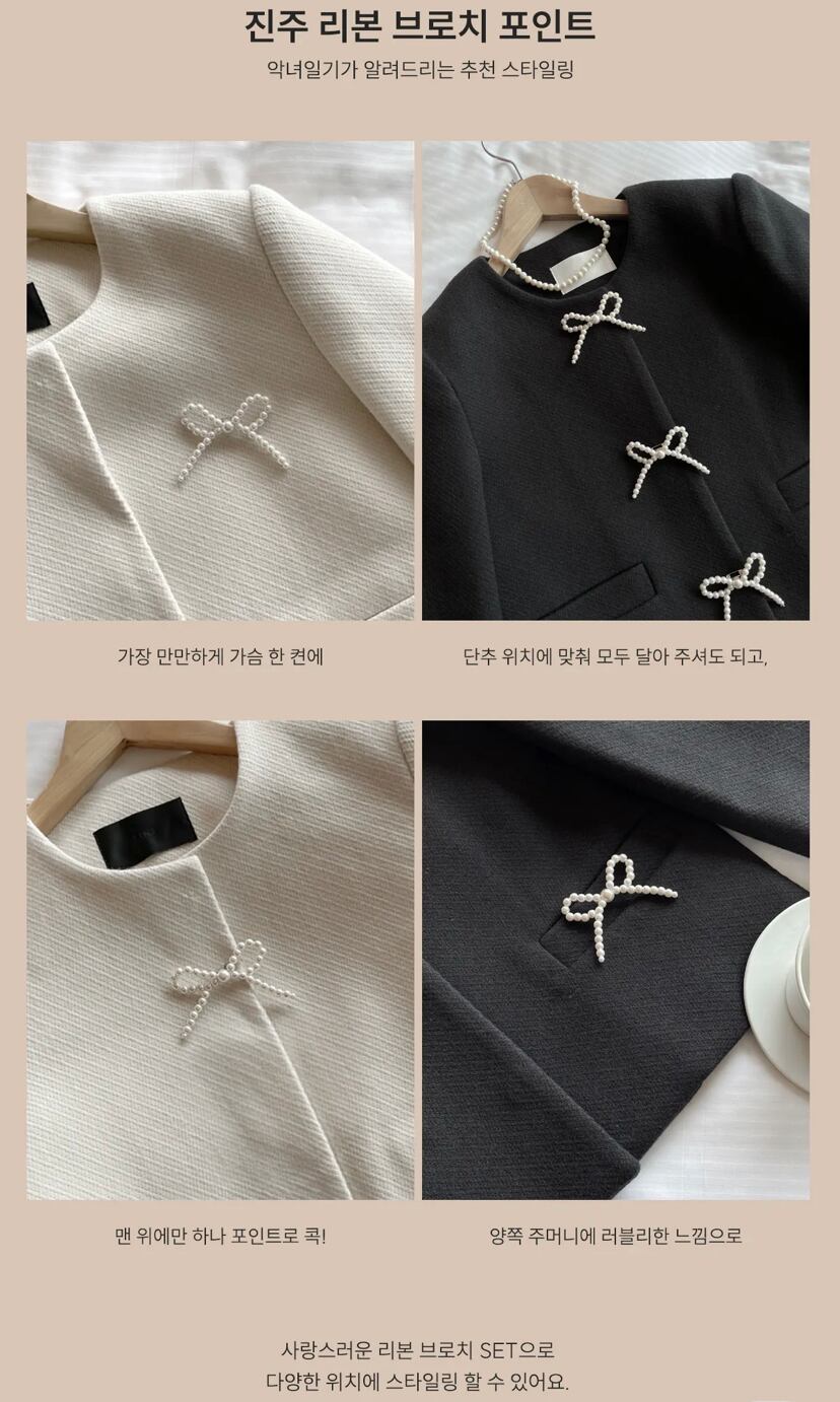 取り外し可能なパールリボンブローチ付きツイードジャケット♡