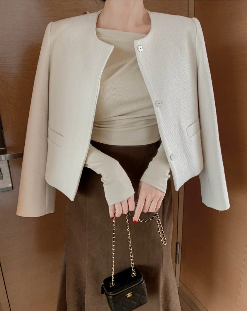 ♡ リボンブローチ付ラウンドツイードジャケット♡