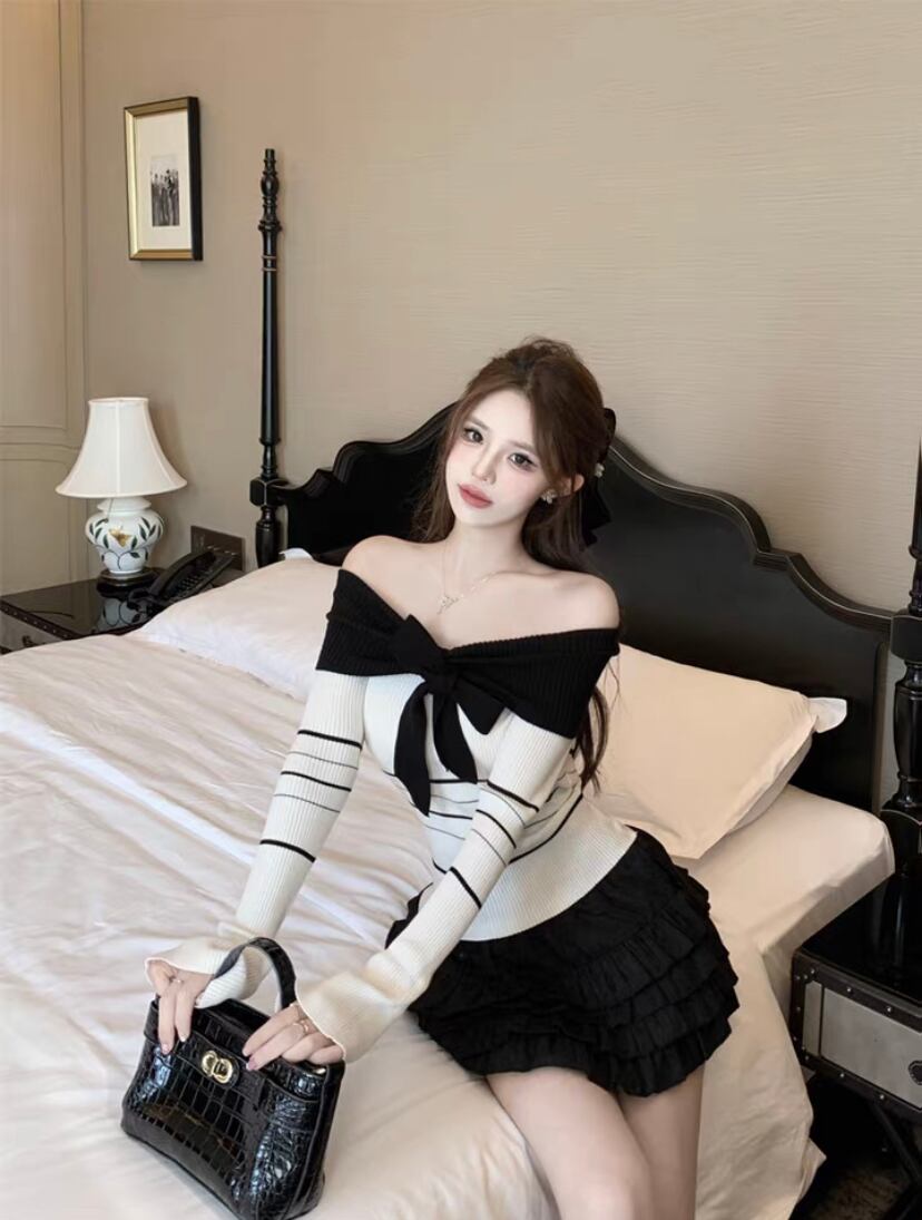 顔まわりを華やかに魅せてくれる大きめのフロントリボンがアクセントのリブニットトップス♡