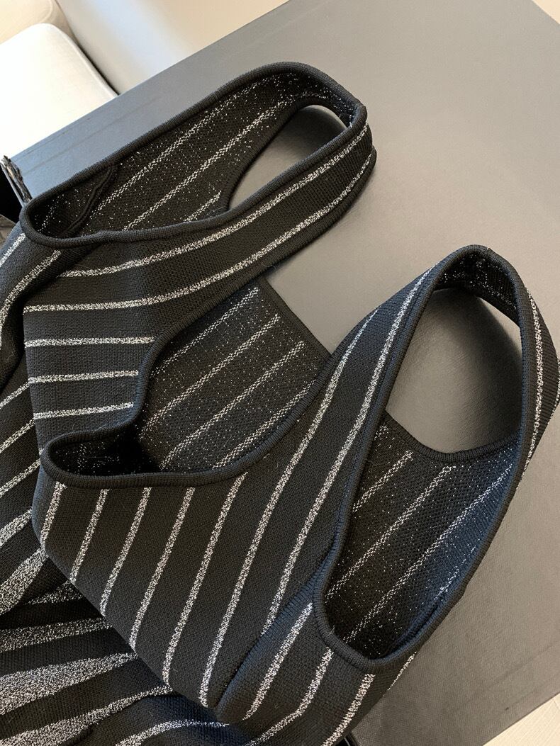 ブラックと光沢のあるシルバー糸が