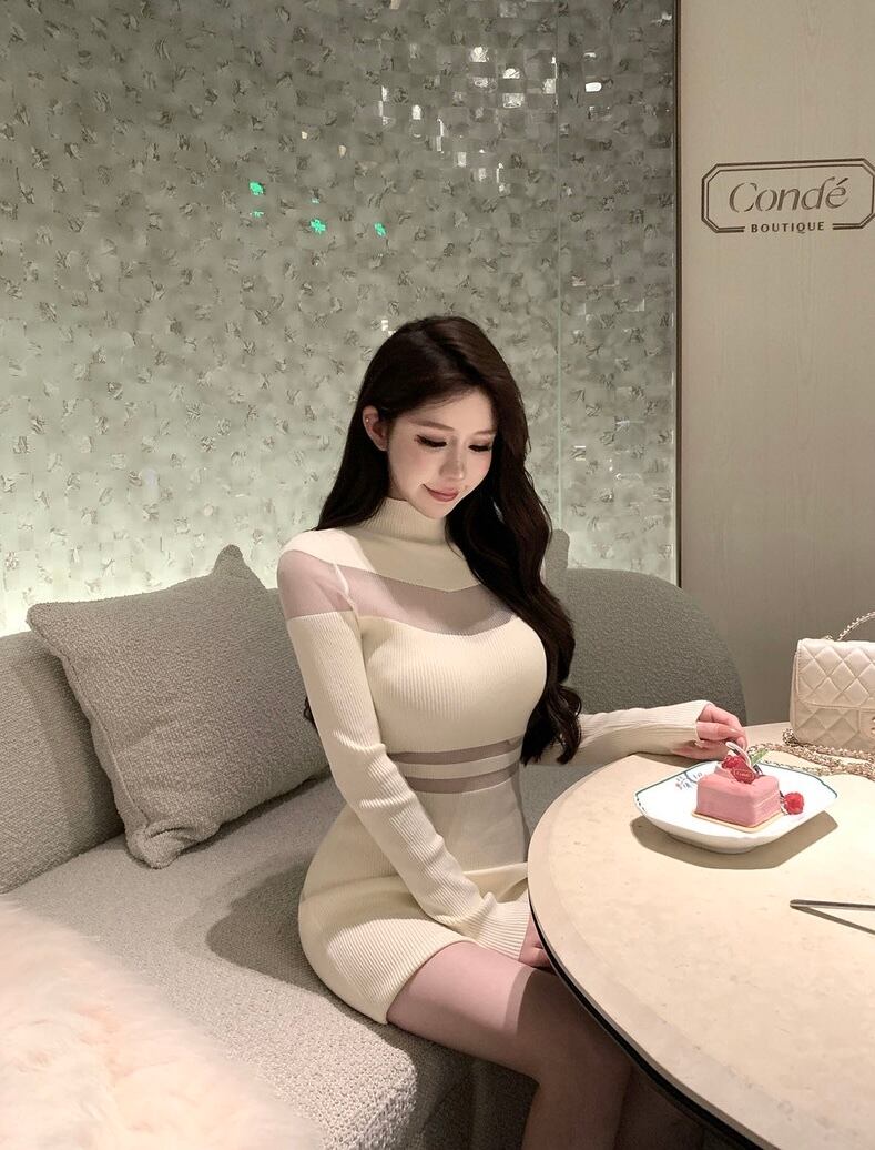 胸とウエストのヘルシーな肌の透け感が大人な女性の印象を演出します・・♡