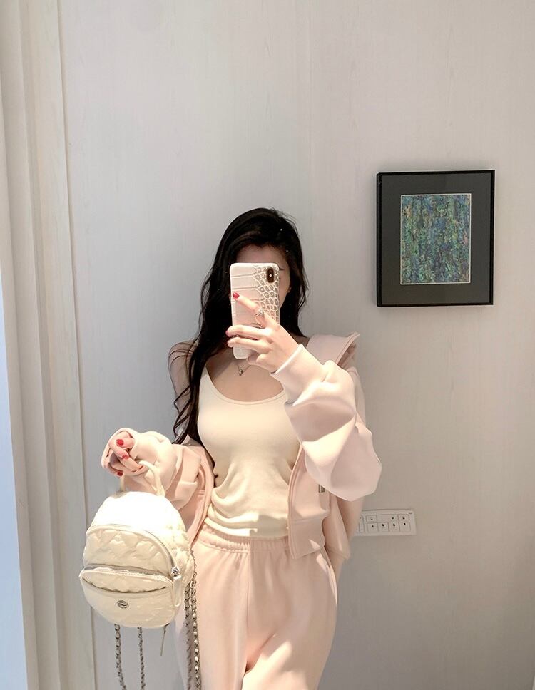 同素材のベビーピンクワイドレッグパンツとのセットアップで、さらに華やかなコーデが完成します・・・♡