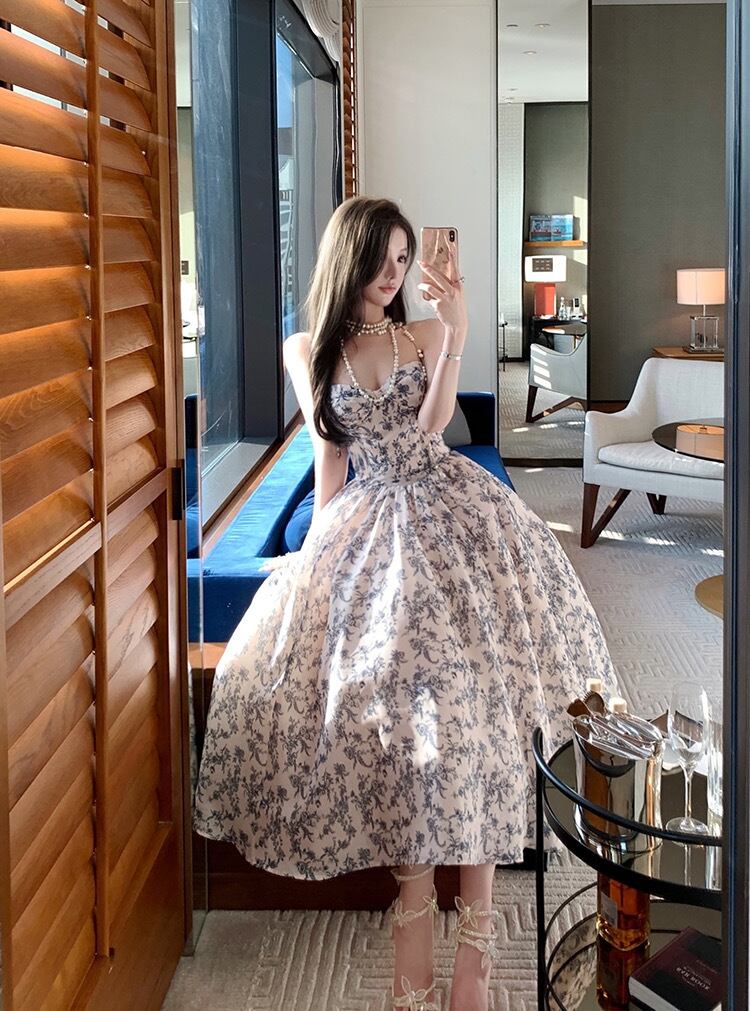 上品なフラワー柄とスタイルアップ効果抜群のコルセット風ベアトップワンピース♡