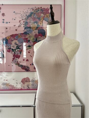 背面が大胆に開いたハイネック仕様のホルターネックが女性らしさを引き立ててくれるとってもセクシーなニットセットアップ♡
