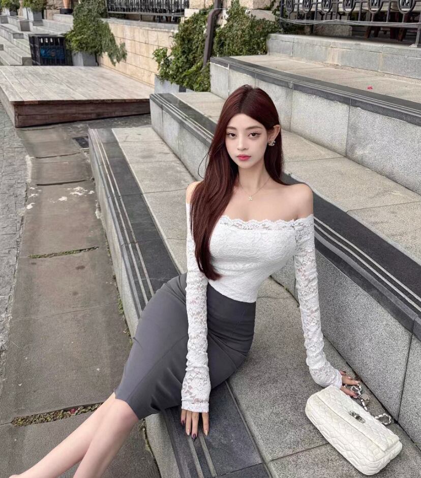上品な立体感があるレースがとってもエレガントなオフショルレーストップス♡